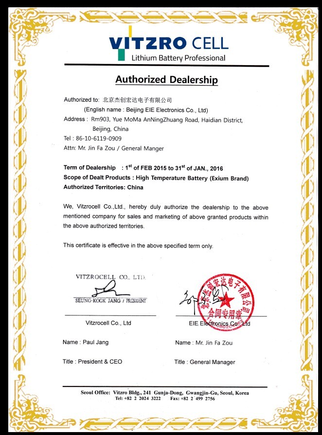 授權(quán)代理韓國VITZROCELL USA(Exium Technologies)鋰電池全系列產(chǎn)品;